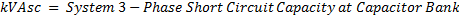 Input the three phase reactive power rating of the capacitor bank (stage), System Line-to-Line Voltage Rating at the Capacitor Bank, and the three-phase phase short circuit capacity in kVA at the capacitor bank to obtain the expected voltage rise.
