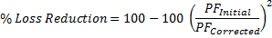 Therefore, improvement in power factor results in a corresponding decrease in current which results in a reduction in power losses by the square of the current reduction.