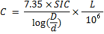 SIC = Dielectric constant of the cable insulation (Table-3) | D = Diameter over the insulation (in) |
