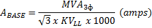 Known variables: Base Three Phase Power, Base Line-to-Line Voltage